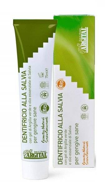 Argital Naturalna pasta do zębów z szałwią na zdrowe dziąsła 75 ml zalecana jest do regularnego użytkowania przy codziennej higienie jamy ustnej, dla całej rodziny. Dzięki naturalnym składnikom i delikatnemu działaniu, nie alergizuje oraz nie wywołuje podrażnień.